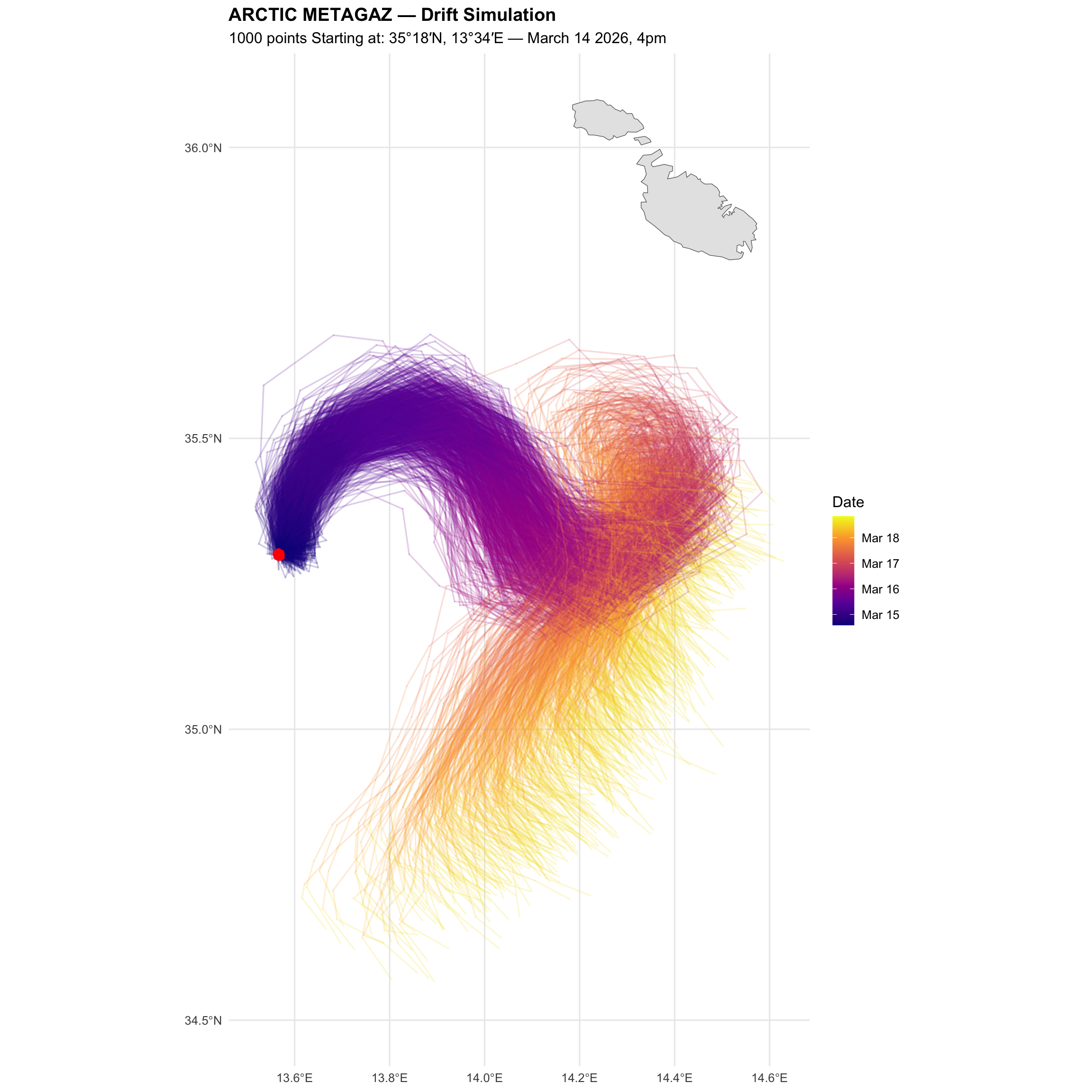 subtitle = "1000 points Starting at: 35°18′N, 13°34′E — March 14 2026, 4pm",