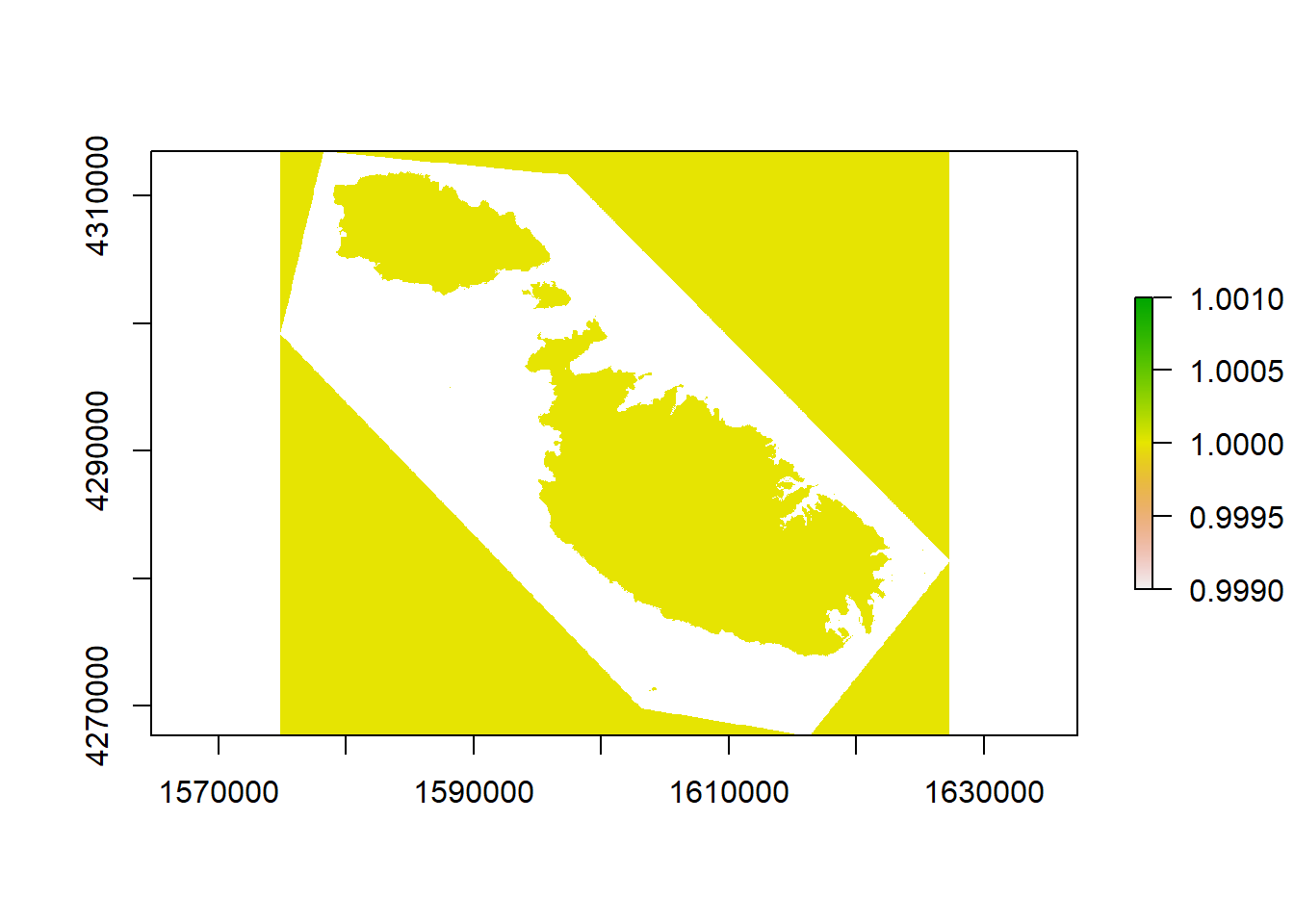 Well, who knew! Turns out Malta is just the right size for my humble laptop to cluster in the time it takes to make a cup of tea! But we’ll probably need to buy an Amazon Web Services subscription of we ever want to do it for a whole continent. Now we’ll create a single raster layer, and we’ll store the results of the k-means classification. All this will contain will be a number from 1 to 7 which identifies to which group that pixel belongs.