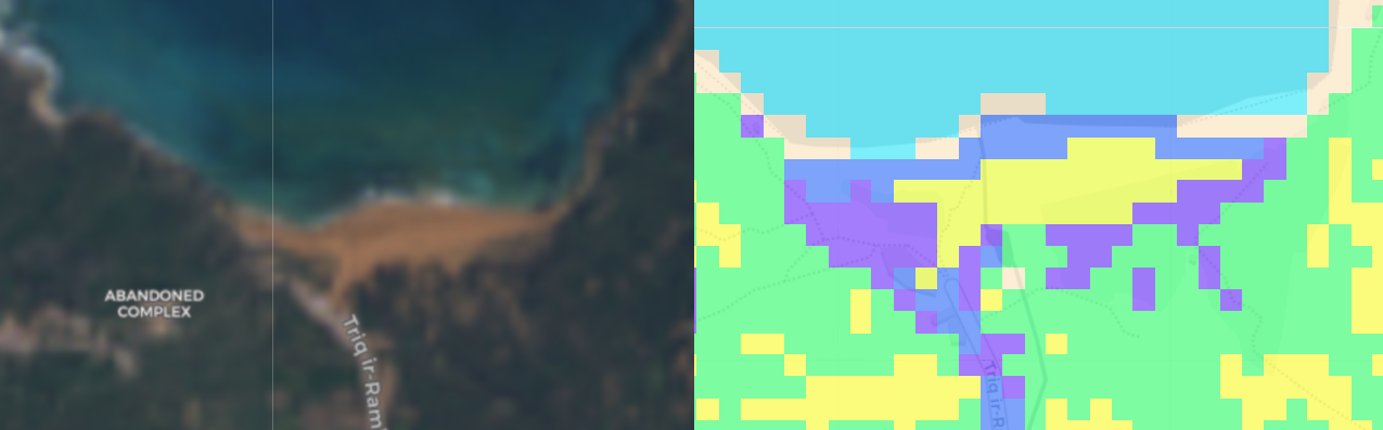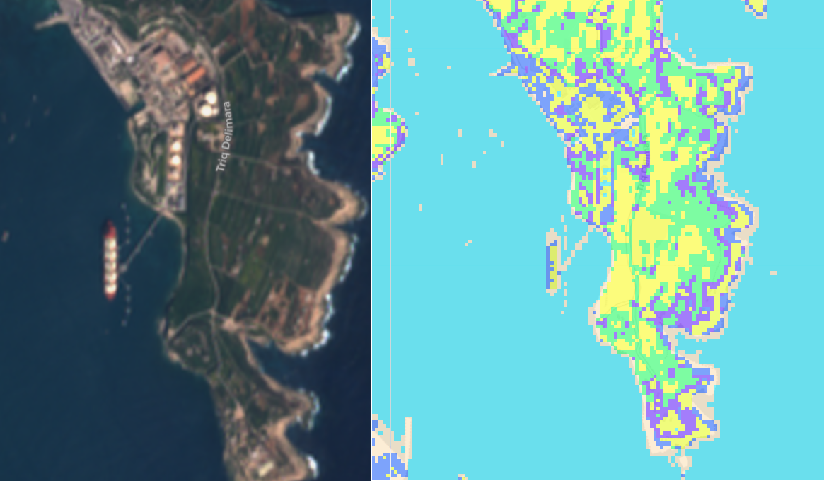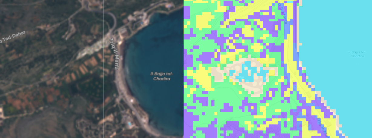 That being said, there are some errors: some pixels in urban areas are misclassified mostly as vegetation, and surfaces like the Xewkija race track, and quarries near Dingli have been labeled as “sea”. Oops.